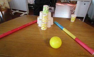 【笠松】紙コップ🥛倒し😊【デイサービス】