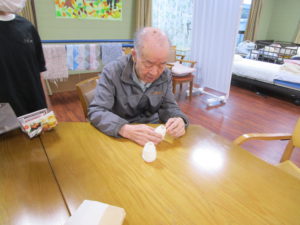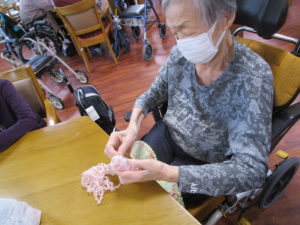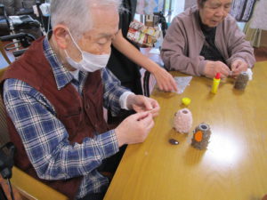 巻いた後は耳の色をそれぞれ選んでいただきボンドで顔を貼りつけました。かわいらしく出来上がりました!✨