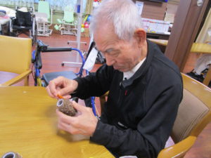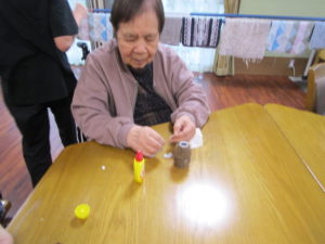 皆様には、両面テープを上手くめくり容器にモコモコの毛糸を巻きる付けられました!