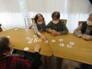 手の届かない所のかるたは声を出したり指をさしたりして取り合います!