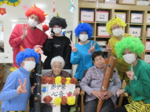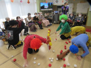 緑鬼を中心に、全員の鬼で「鬼のパンツ」を踊りました。