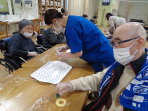 利用者様には輪っかの型抜きしてもらいましたよ~(*^^)v