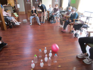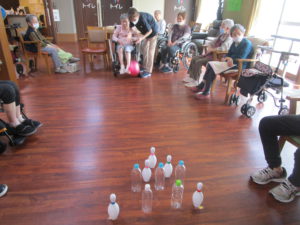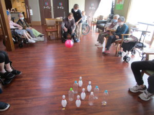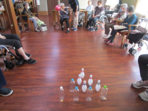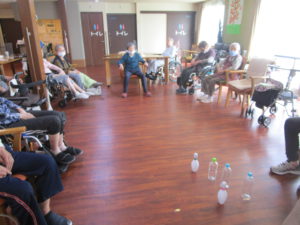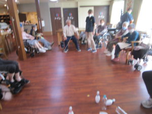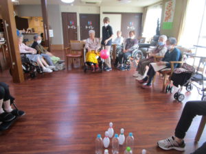 2025.09.22 ケアセンター笠松、心音日記 【笠松】ボーリング【デイサービス】 皆様こんにちは。 本日は、ボーリングを行いました。 1人2回ずつ投げて合計得点を競います。 1回でピンを全部倒された方は、いませんでしたが、2回で全部倒された方 が、1人だけいました。 今まで1位になった事がなかった為とても 喜んでいました。 次回もお楽しみに!