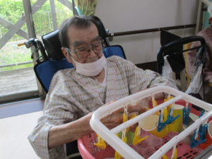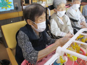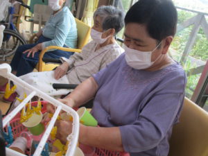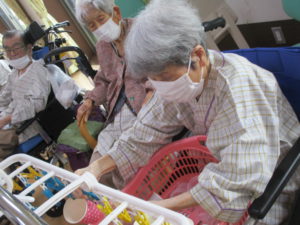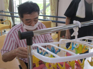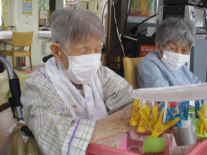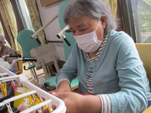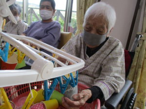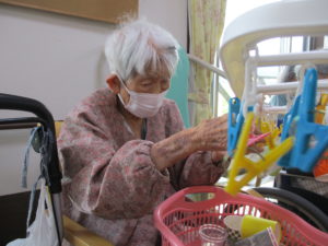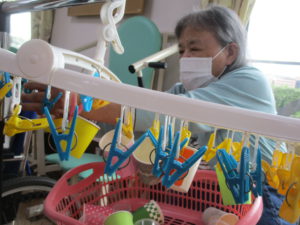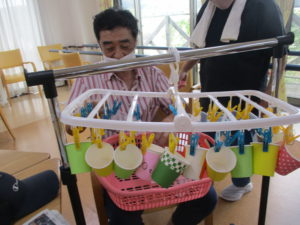 2025.09.30 ケアセンター瑞浪、心音日記 【瑞浪】コップつり【デイサービス】 本日は【コップつり】を行いました(^^♪ 全部で20個あるコップを制限時間1分間で 何個干つけれるのか、挑戦していただきました😊 皆さまとても集中されていました! そしてとても手際よく進められていました。 本日の最高記録は17個でした(^_-)-☆ とてもハイペースでした💛指の良い運動になりましたね✌ 本日も一日お疲れさまでした!(^^)!
