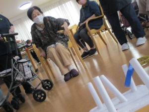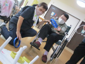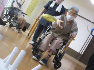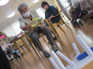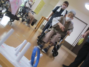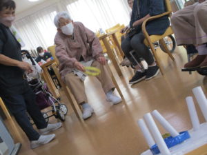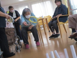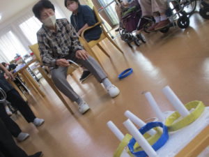 2025.10.3 ケアセンター瑞浪、心音日記 【瑞浪】輪投げ( `ー´)ノ〇【デイサービス】 本日は【輪投げ】を行いました(^^♪ 一人10回で何点取れるのか、挑戦していただきました✨ 狙いを定めて力いっぱい投げられました! 「それ!」「入らんな~」「難しいね~」と様々な声がありました! 得点が入ると「すごいね~」「上手だね~」と拍手で盛り上がりました!(^^)! ~本日の結果~ 1位 250点 2位150点 3位140点でした!! とてもお上手でした💛 本日も一日お疲れさまでした🎀