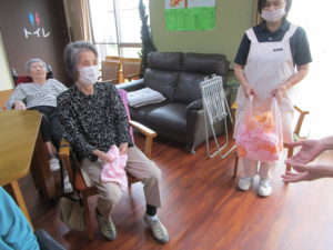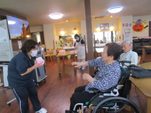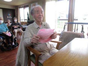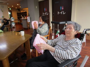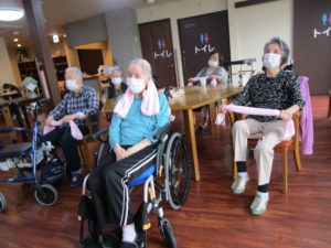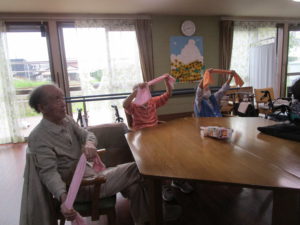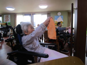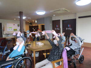 2025.10.3 ケアセンター笠松、心音日記 【笠松】タオル体操【デイサービス】 こんにちは! 今回のレクは、タオルを用いた体操を行いました。 タオルを両手に持って上下左右に動かしたり、結んで上に投げたりして 身体を動かしました。 皆さんとても真剣に取り組んで頂き、途中休憩をはさみながら頑張りました。 皆さん、今日はゆっくり休んでください。 本日もありがとうございました! 次回もお楽しみに!