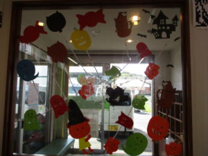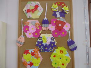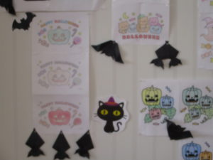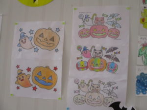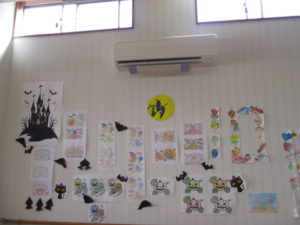 今月の壁画は、皆さんに塗ってもらった塗り絵と