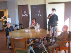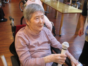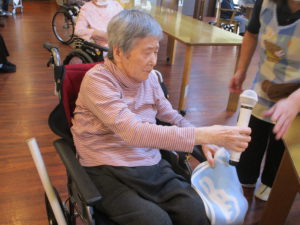 積極的にマイクを持って歌う方もいましたが、ほとんどの方は、歌付きのカラオケで