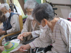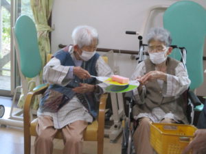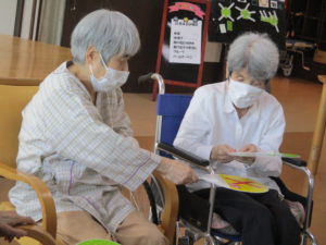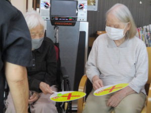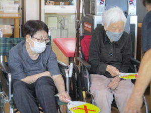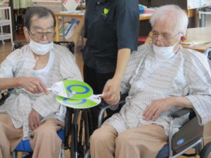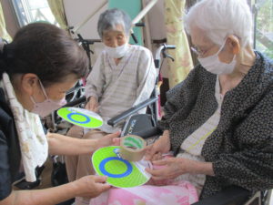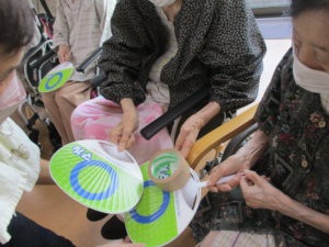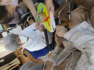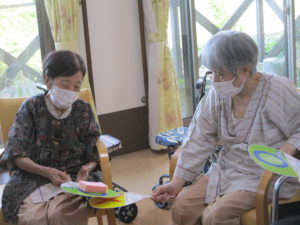 2025.10.8 ケアセンター瑞浪、心音日記 【瑞浪】うちわリレー【デイサービス】 本日は【うちわリレー】を行いました😊 全員で輪になり、うちわでリレーをしました! 洗濯ばさみや消しゴム、ペットボトルのキャップ、ガムテープなどを 落とさない様に隣の人に繋いでいっていただきました!(^^)! ガムテープは大きく、苦戦される姿がありました(>_<) 小さいものはとても器用にお上手に運ばれました!! 本日も一日お疲れさまでした💛