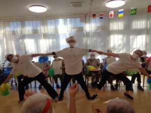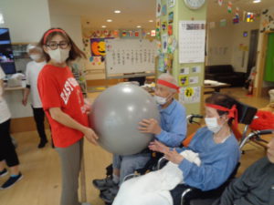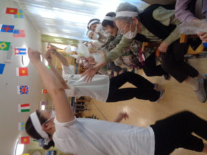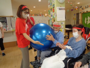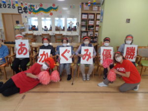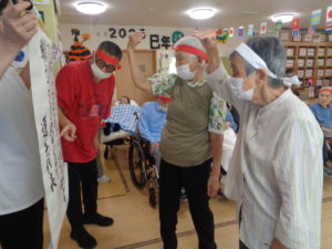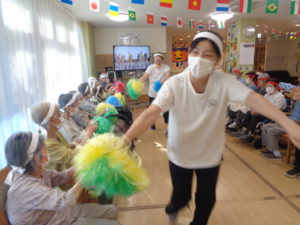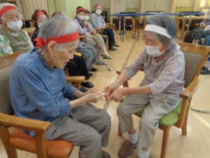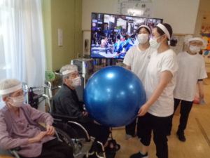 ラジオ体操で体をほぐしたあと、両キャプテンによる