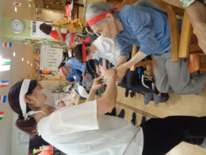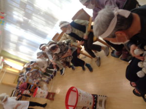 そして、お楽しみのパン喰い競争。といっても、今回は手で掴みます。