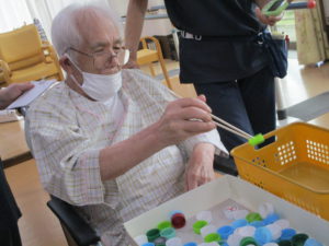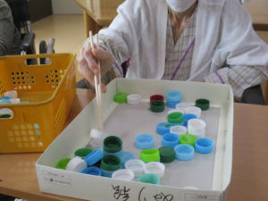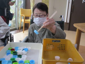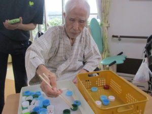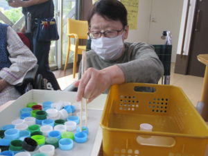 制限時間1分で何個キャップを移せるか、というゲームです(^O^)/🥢