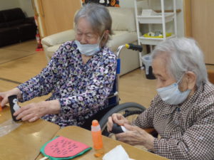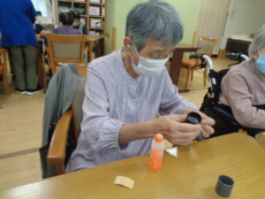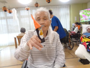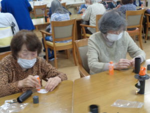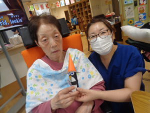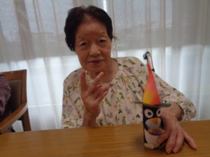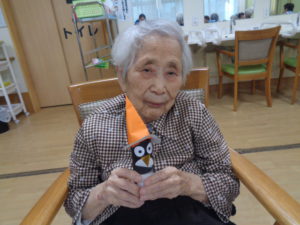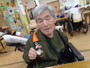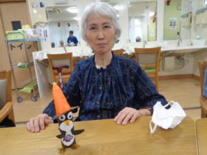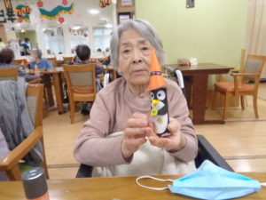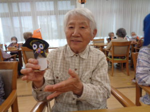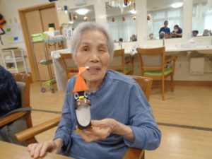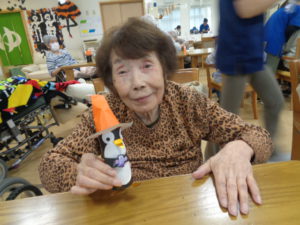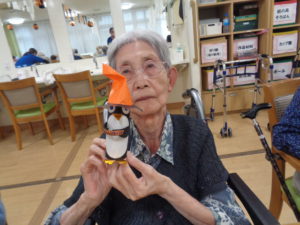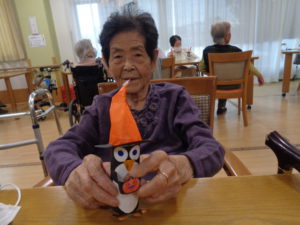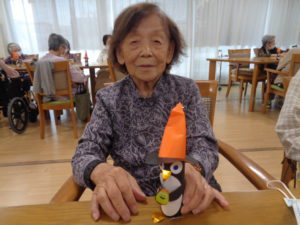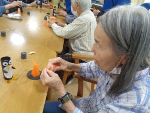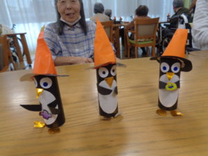 本日のレクリエーションは、ハロウィン仕様のペンギンを作りました。