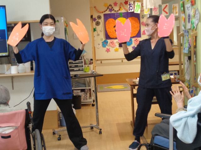 スタッフの元気の出る掛け声とヘンテコな動きに