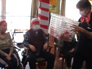 玉入れ、大玉小玉送り、キックゲーム、飴食い競争、パン食い競争と