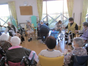 皆さまに輪になっていただき、スプーンで色んなものをリレー形式で