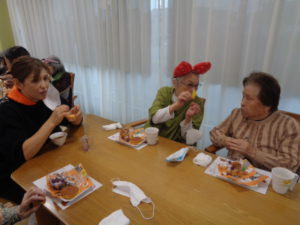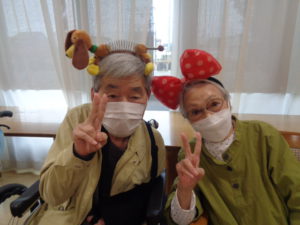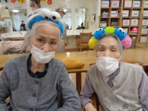 利用者様も様々なカチューシャや、メガネを身に着け、