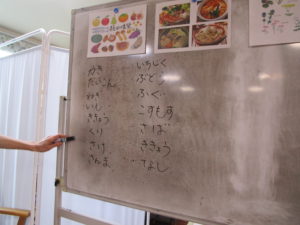 柿やコスモス、サンマなどたくさん考えられて文字を真剣に探すこと出来ていました!