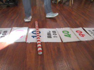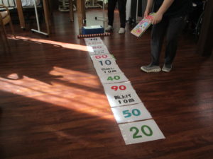 点数や✖ゲームのエリアがあり、✖ゲームでは手足の運動を10回やってもらうなどが