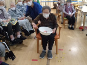 今日は、お手玉玉入れゲームをしました✨