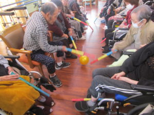 本日のレクは、チーム対抗棒サッカーを行いました!