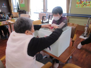 今回は少し深めの箱で芋ほりを挑戦してもらいました。