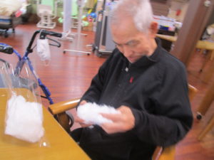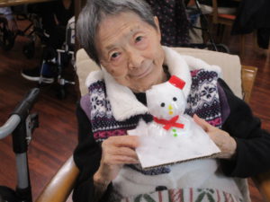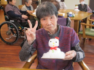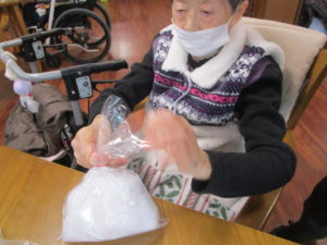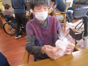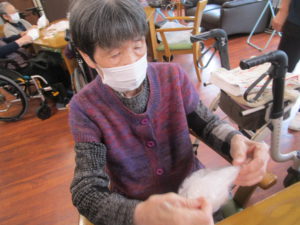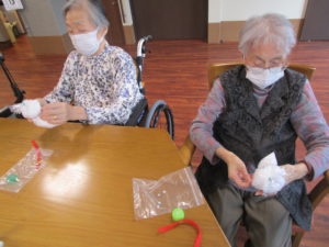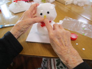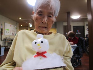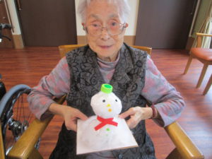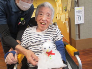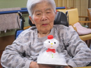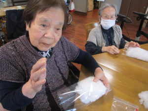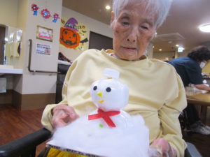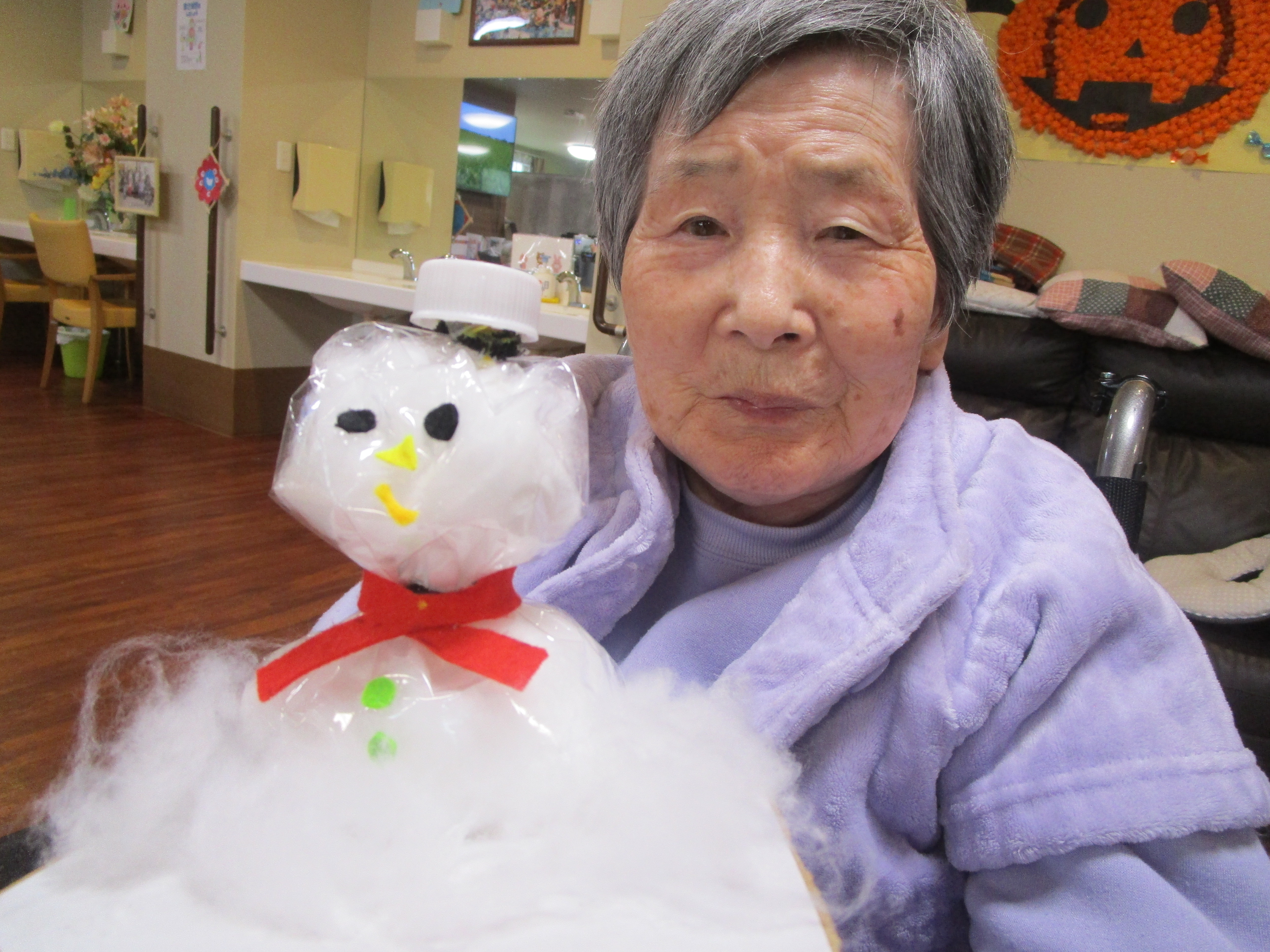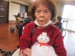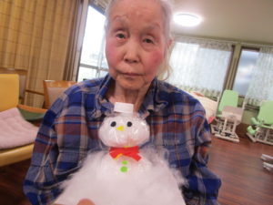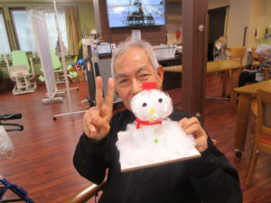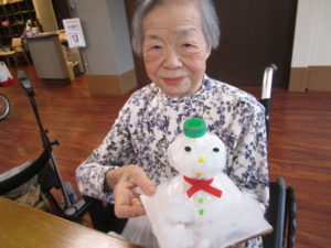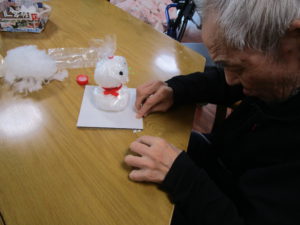 本日のレクは、袋と綿で雪だるま作りを行いました!⛄