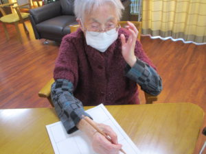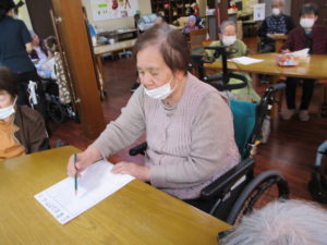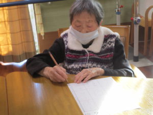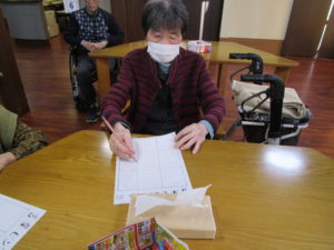初めの3つくらいはスムーズに書くことが出来ていましたが、いざ何があるかと聞くと中々書き出すことが出来ていませんでした。でも、スタッフが少しヒントを言うと色々出すことが出来ました!