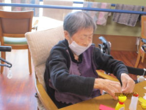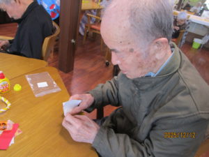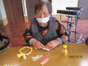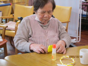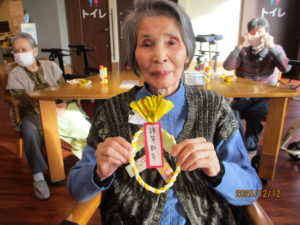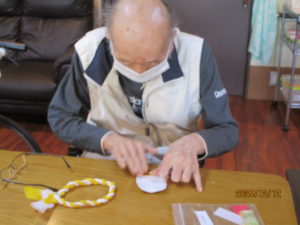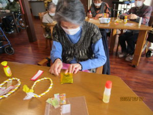 しめ縄は、時間がかかるため、職員が用意してしめ縄に貼る作業を