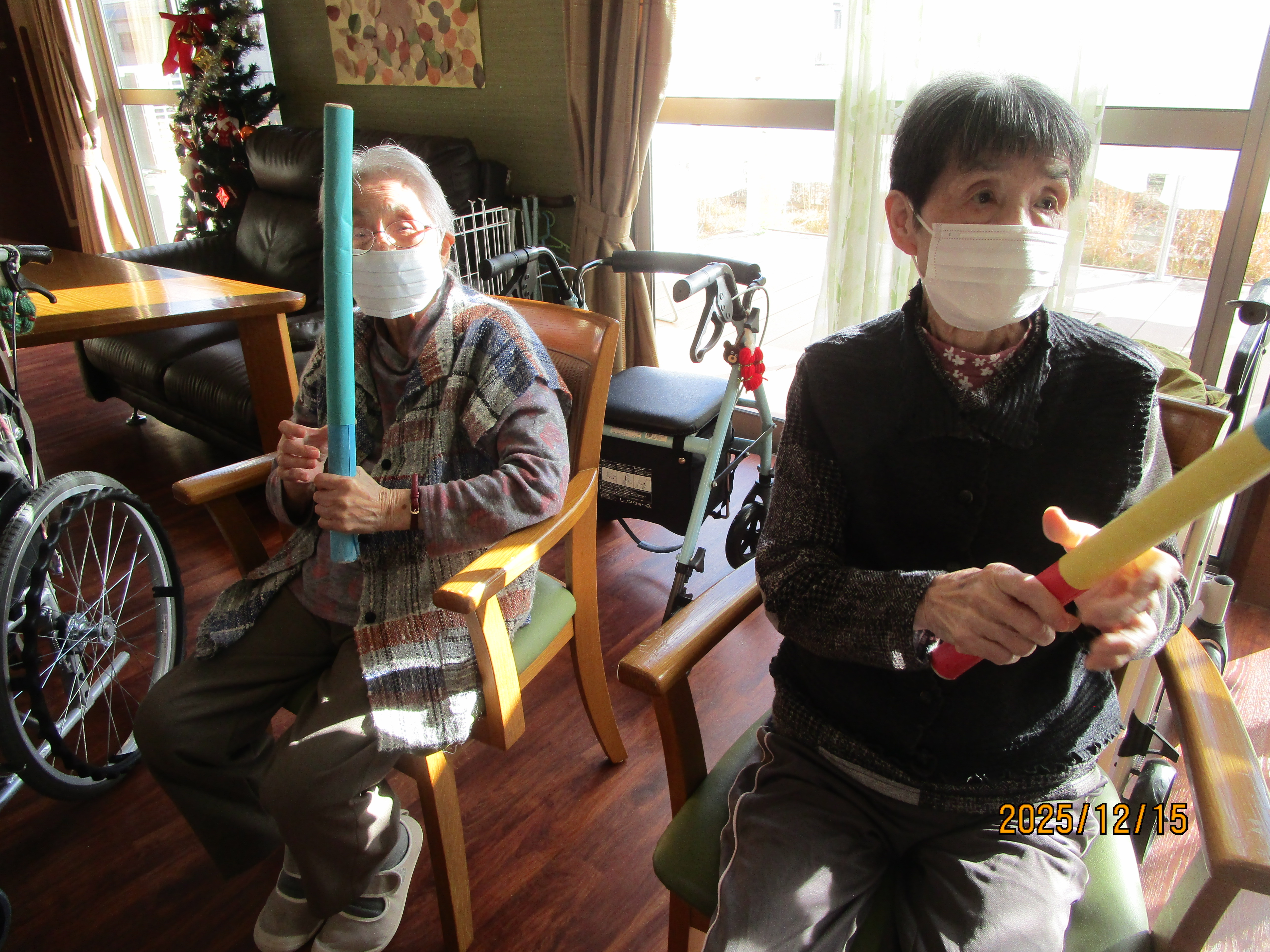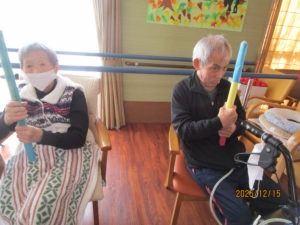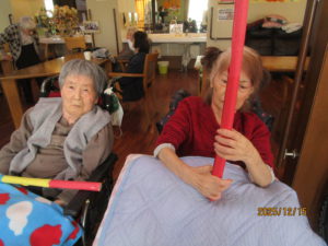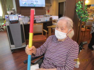本日のレクは、棒体操、わっかリレーをおこないました。