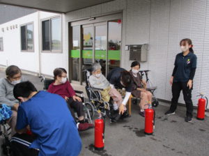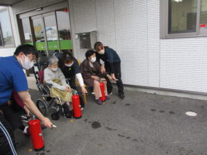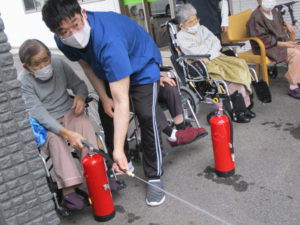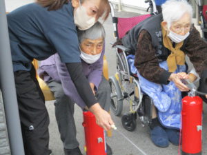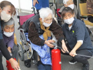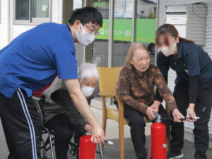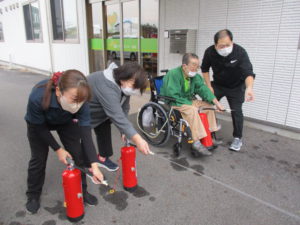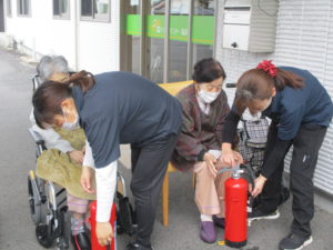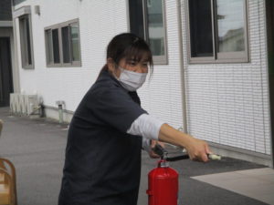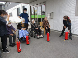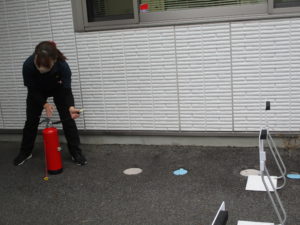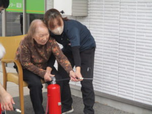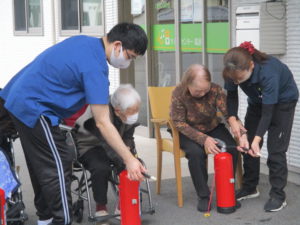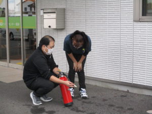 「消火器ってこうやって使うんだね」と興味津々で体験される方もみえ、