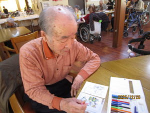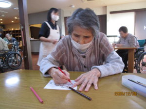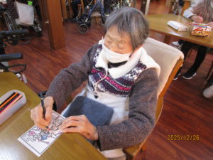 お正月が近くなっていたので、干支や門松などの色を塗って頂きました!