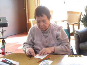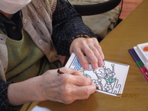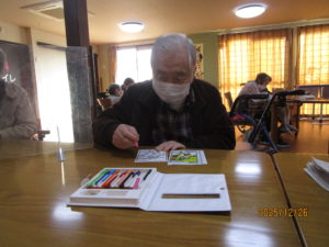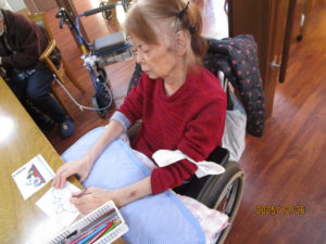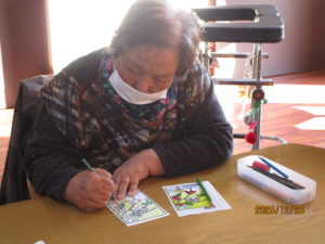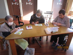 皆様見本を皆だが綺麗に塗られていました。おせちの話しなどをしながら楽しにながら作成をすることが出来ました。