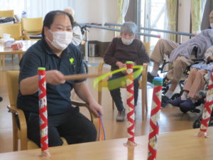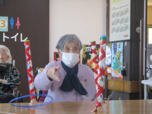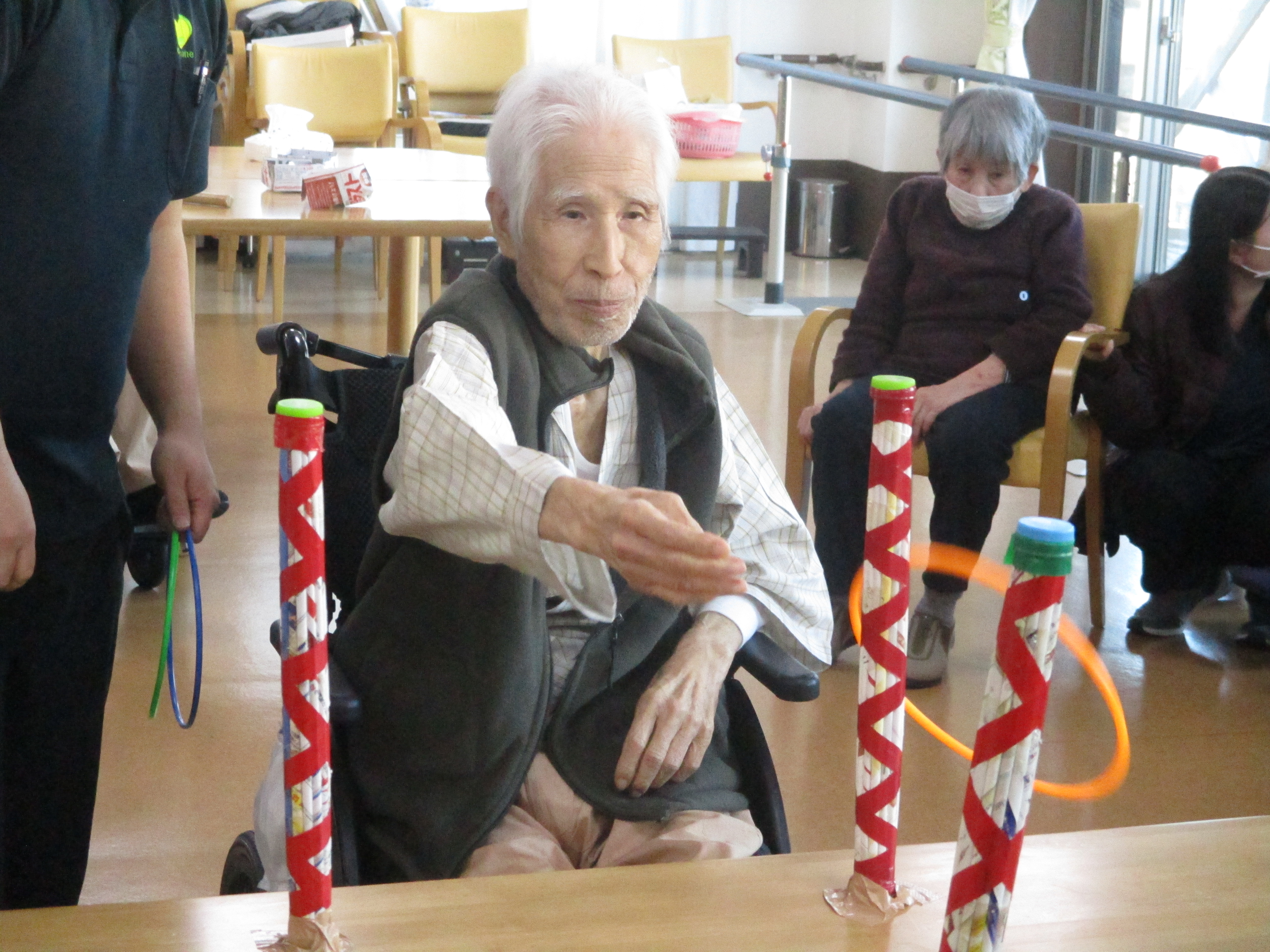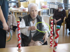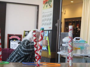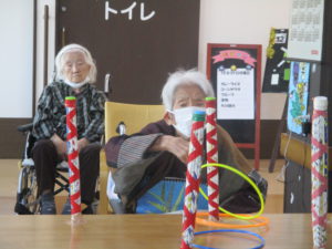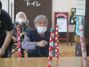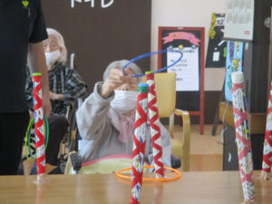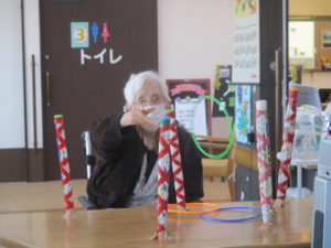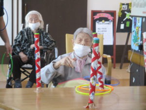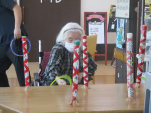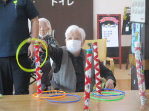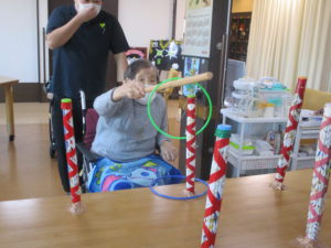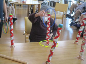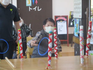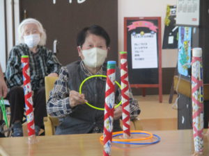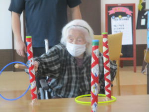いつもの輪投げとは違い、今回は棒が少し長めで