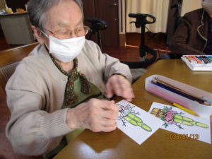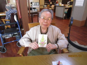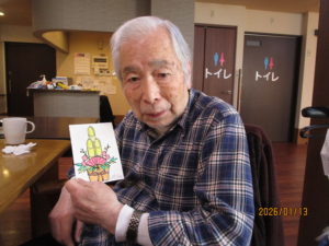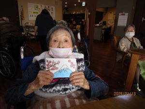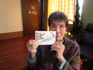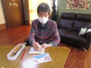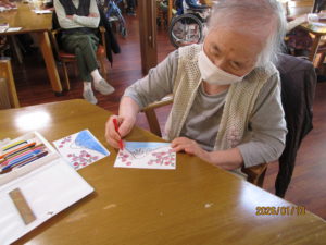 本日のレクは、一月の絵手紙を行いました。