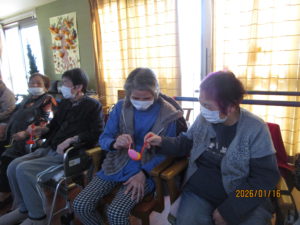 隣の方に手を使わずに渡します。二組とも途中で床に落とすケースが目立ちましたが