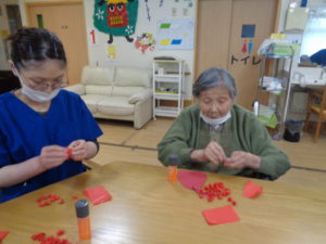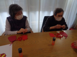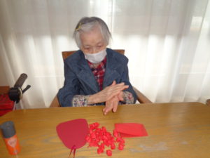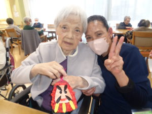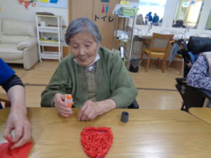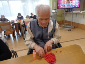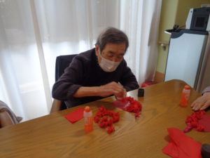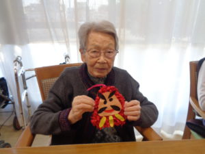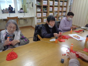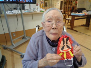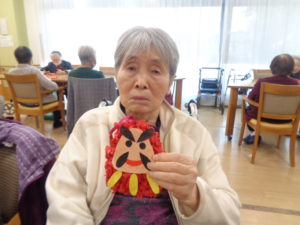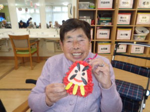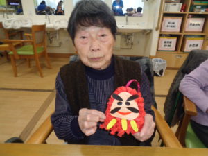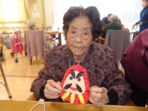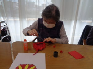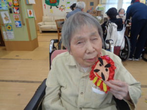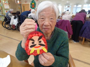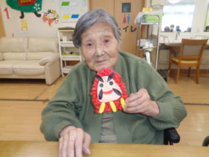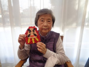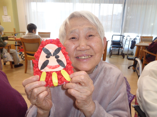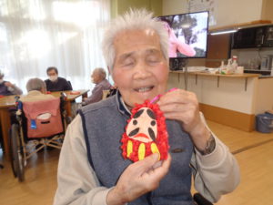 本日のレクリエーションは作品作りで、凛々しいだるまさんを作りました。