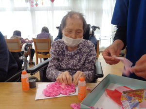 ハートの型に折り紙や、お花紙を丸めて