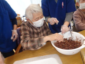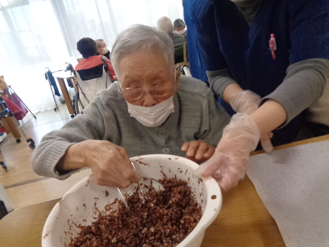 溶かしたチョコレートを混ぜ合わせて
