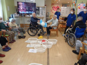 本日のレクリエーションは、2人でシュート・ぬいぐるみバージョンです。
