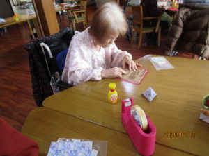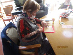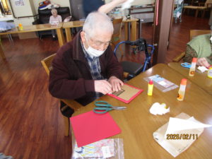 画用紙や折り紙をのりやボンドで貼り付けたり、ハサミで切ったりしながら