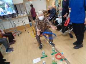 2026.02.13 ケアセンター各務原、心音日記 【各務原】輪投げゲーム【デイサービス】 今日は大小様々な輪投げを使って、挑戦しました。 狙い定めて、カッコイイですね。 100点を何度も取れて凄かったですね。 また次回に逢いましょう。