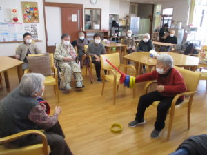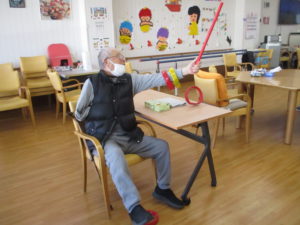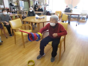輪っかを投げたり、棒を使って受け取ったりしました。