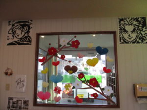 利用者玄関側は、バレンタインをイメージしています。