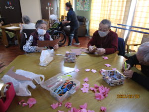 本日は、壁画作りで🌸桜並木を作りました。