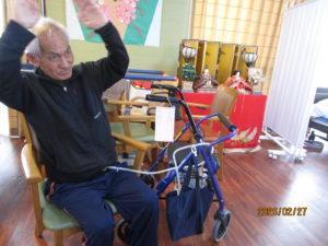初めに棒体操で皆様、沢山腕や手首などを動かしました!