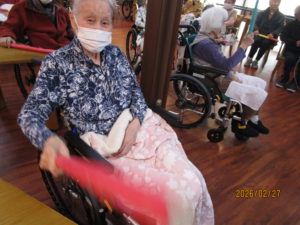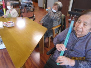 本日のレクは、棒体操とわっかリレーを行いました。