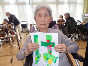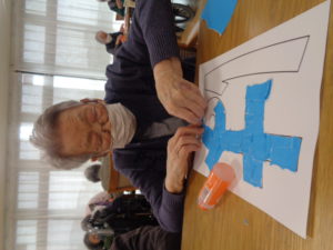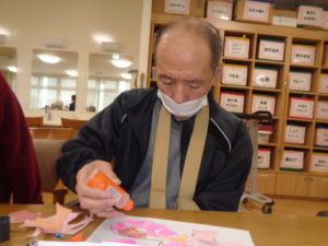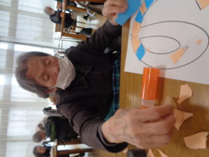 皆さん集中して折り紙をちぎって、貼り付けていきます。