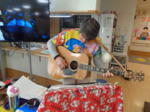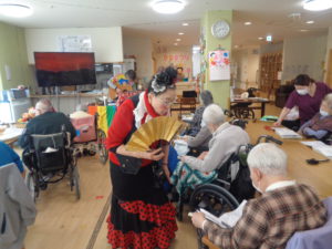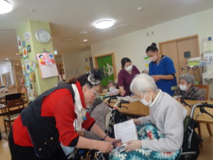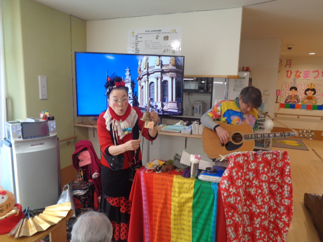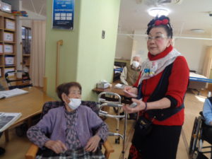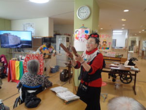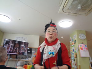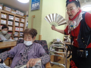 小道具と、軽妙なトークで、利用者様を盛り上げます。