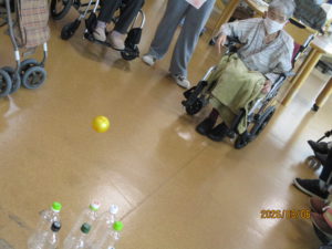 ピンをめがけてボールを転がすたびに、笑い声や「やった!」という声が響き、とても賑やかな時間になりました。